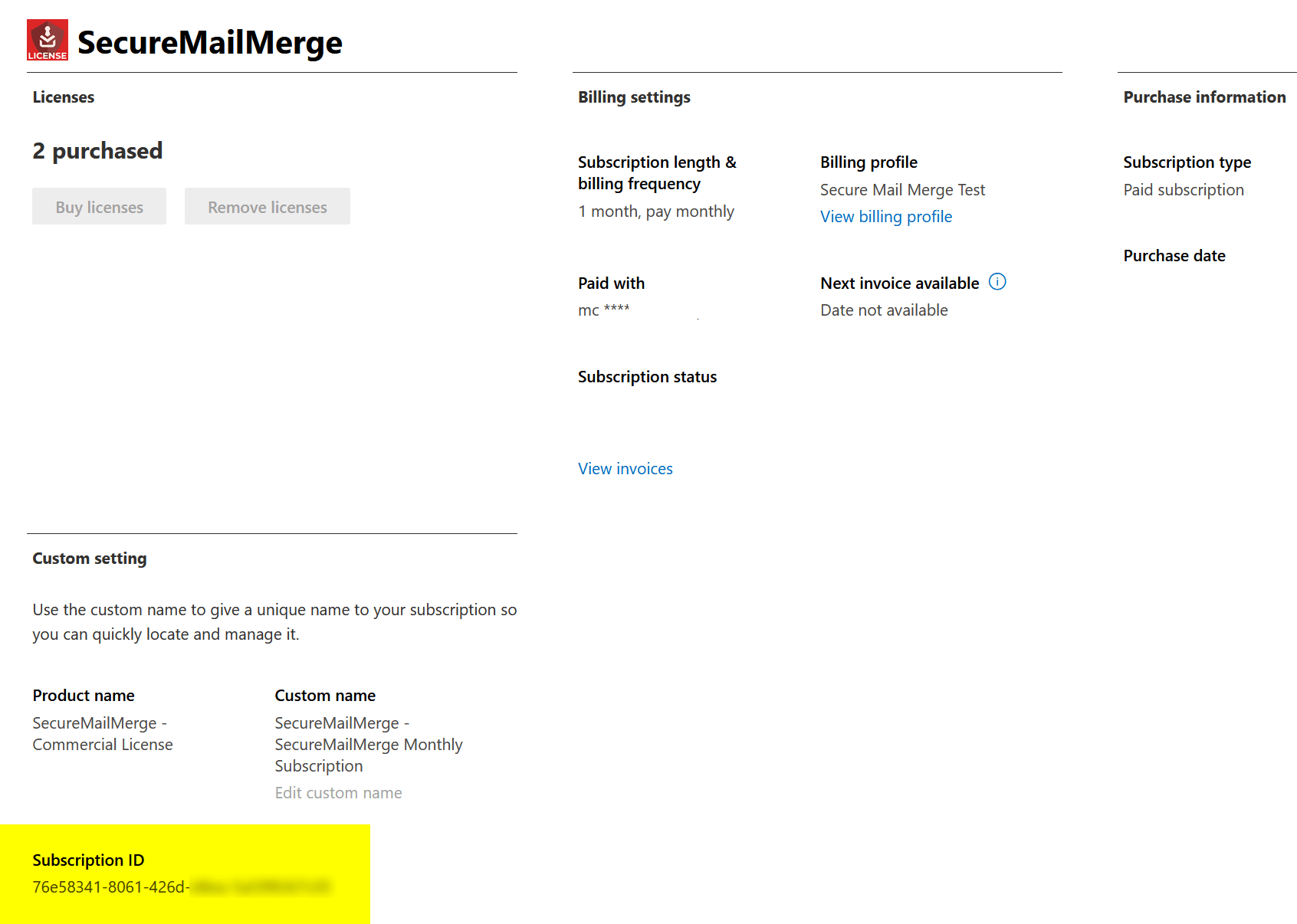 - Click the recently purchased SecureMailMerge SaaS subscription.